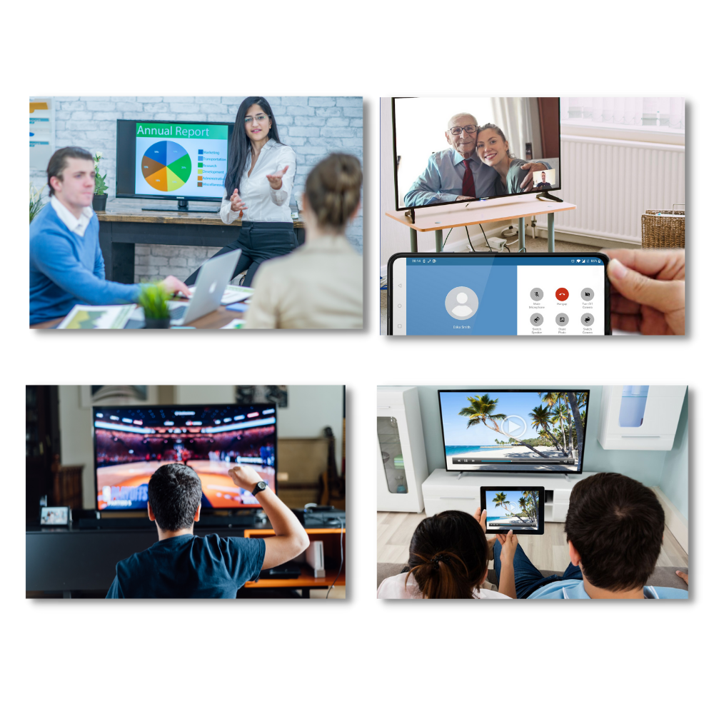 Oppure potresti usarlo per mostrare grafici e documenti importanti durante una presentazione in ufficio. Potresti anche goderti una videoconferenza e vedere chiaramente gli altri partecipanti su uno schermo più grande!