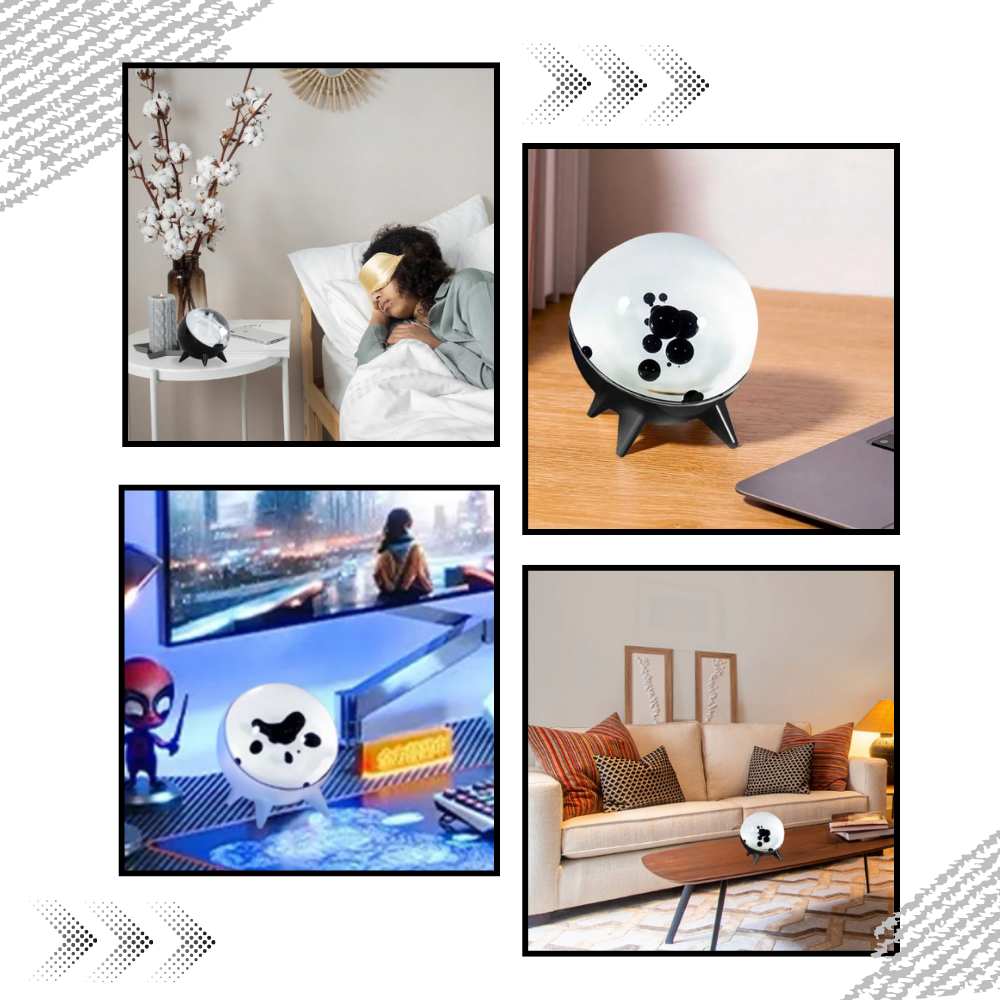 Create l'atmosfera perfetta con l'illuminazione bianca calda della lampada. La sua luce delicata esalta i movimenti dell'Altoparlante in Ferrofluido Danzante senza sovrastare l'ambiente circostante, rendendolo ideale per il relax o come sottile elemento d'arredo. Che si tratti di una serata intima o di uno spazio di lavoro creativo, la luce calda completa ogni ambiente.