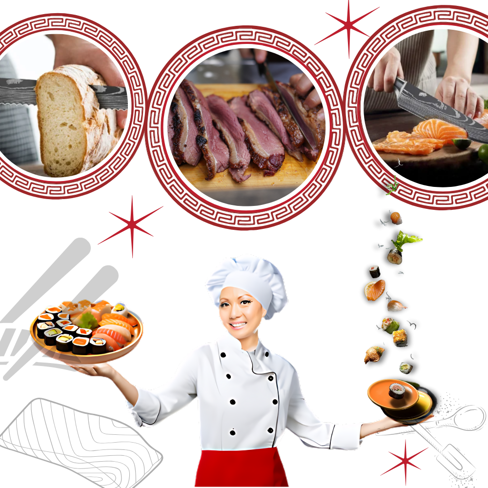 Varianti: Coltello da cuoco | Coltello da pane | Coltello per affettare | Coltello Santoku grande | Coltello Santoku piccolo | Coltello spelucchino | Coltello mannaia | Coltello per disossare | Coltello Kiritsuke | Coltello multiuso | Set di 10 coltelli