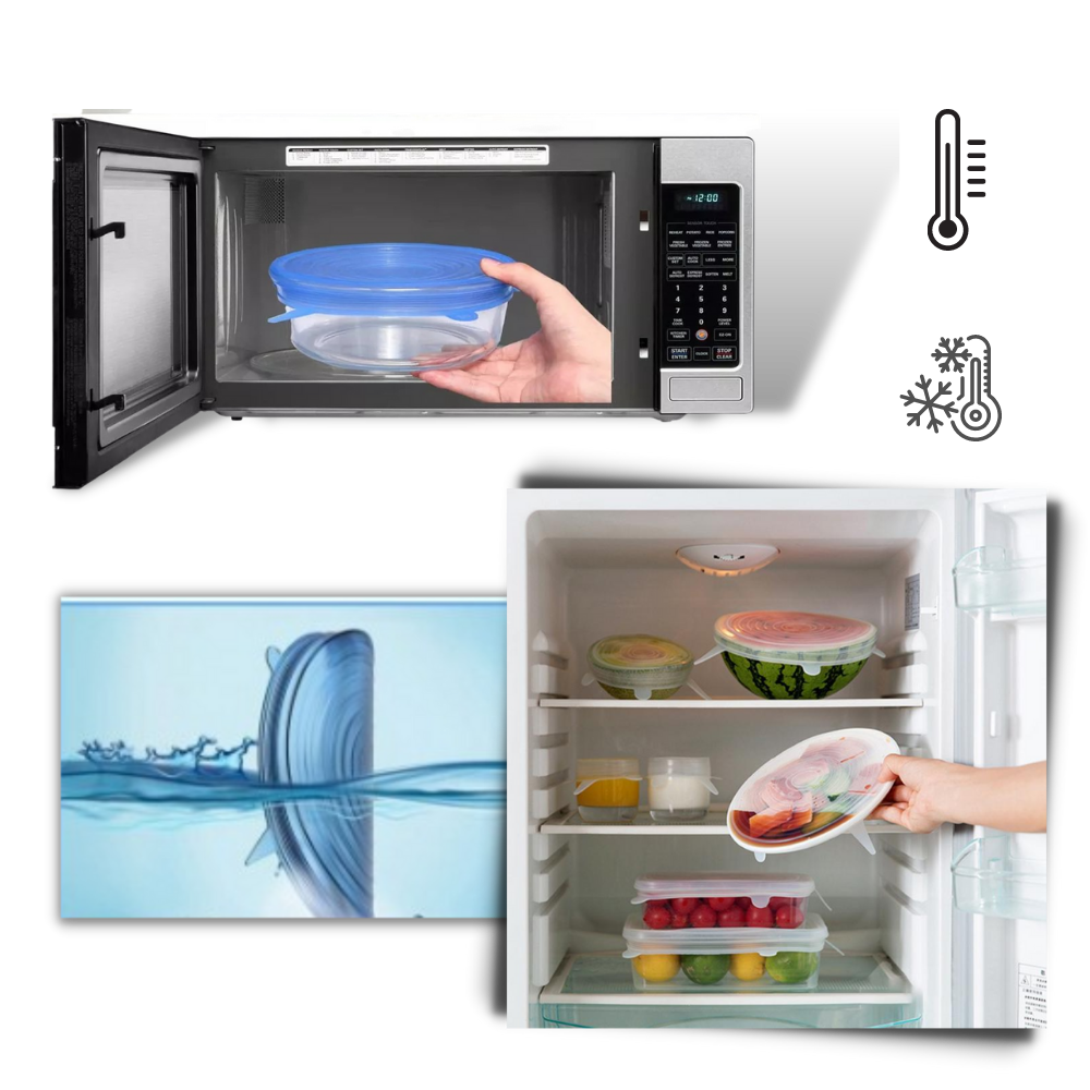 Ora è più facile conservare e mantenere il cibo fresco con i 6 coperchi elasticizzati in silicone