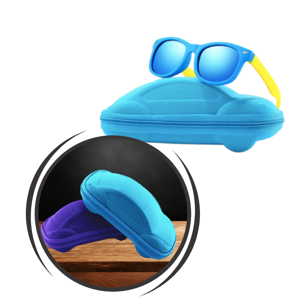 Riponi e proteggi gli occhiali da sole dei bambini in questa coloratissima custodia in foam con il design di un'auto.