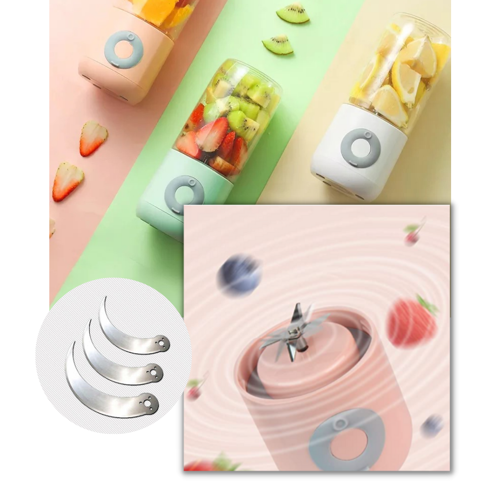 La tazza del frullatore portatile è fatta con durevoli e forti lame di macinazione in lega con velocità di rotazione del motore. È fatto di acciaio inossidabile 304, resistente alla ruggine e al deterioramento. Può polverizzare senza sforzo e non lascia pezzi di frutta. Non è rumoroso come i frullatori tradizionali e può essere usato discretamente.