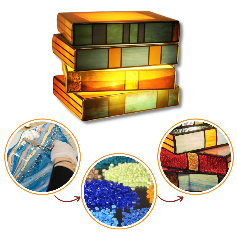 La lampada senza tempo a libri impilati è una testimonianza del suo design vibrante e artistico, che ne aumenta notevolmente il suo fascino estetico. L'uso della resina colorata nella sua costruzione non solo aggiunge resistenza e durata alla lampada, ma consente anche una ricca e vivida visualizzazione dei colori, emulando la bellezza del vetro colorato tradizionale. Questa scelta di materiale dà vita a ogni libro della pila, con colori che spiccano e aggiungono un elemento visivo dinamico a qualsiasi ambiente. La capacità della resina di catturare e riflettere la luce arricchisce la presenza complessiva della lampada, rendendola un punto focale ovunque sia collocata. Sia che proietti una calda luce in un accogliente angolo di lettura o che funga da centrotavola in un salotto, la struttura in resina colorata della lampada assicura che non sia solo una fonte di luce, ma un'opera d'arte che celebra la creatività e lo stile.
