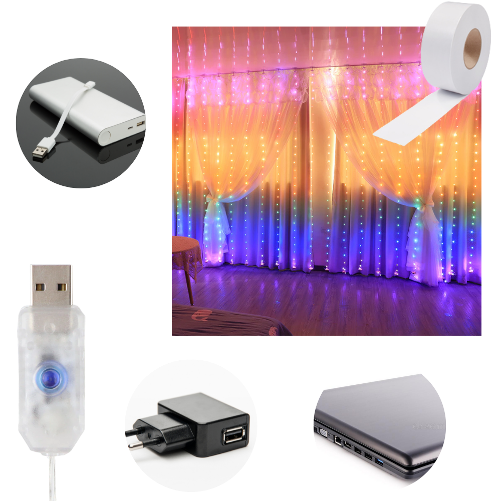 Queste luci fatate per tende sono facili da installare. Sono molto leggere, quindi non sarà necessario installare ganci o altro. Puoi fissarle all'asta della tenda usando del nastro adesivo, o puoi posizionarle nella parte superiore del telaio della finestra. Srotolate i sottili fili di rame con le luci a led e lasciateli cadere. Il prodotto ha una spina usb per alimentare le luci a led. Nota: un adattatore di alimentazione non è incluso. Utilizzare un adattatore telefonico di riserva o collegarlo a un power bank o a una porta usb del laptop. I fili di rame non si riscaldano, anche dopo un uso costante. Quindi queste luci sono sicure da installare contro il tessuto della tenda o nelle camerette dei bambini.