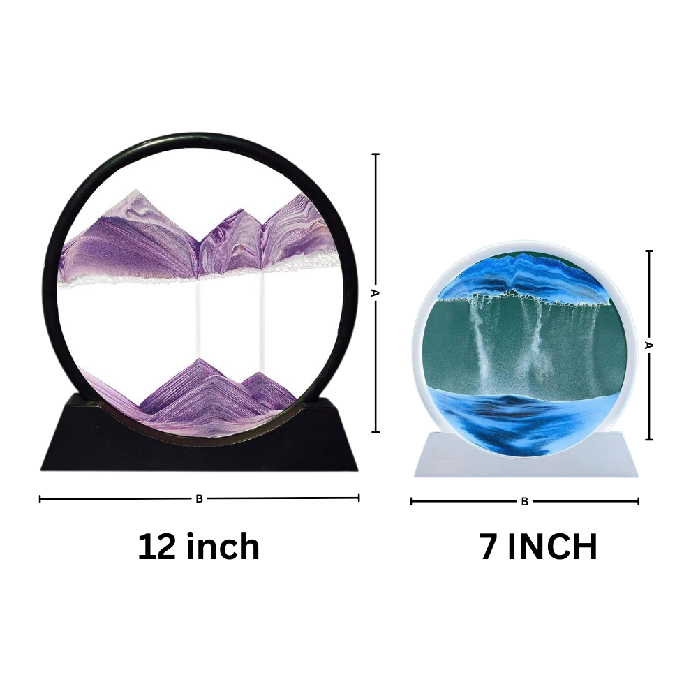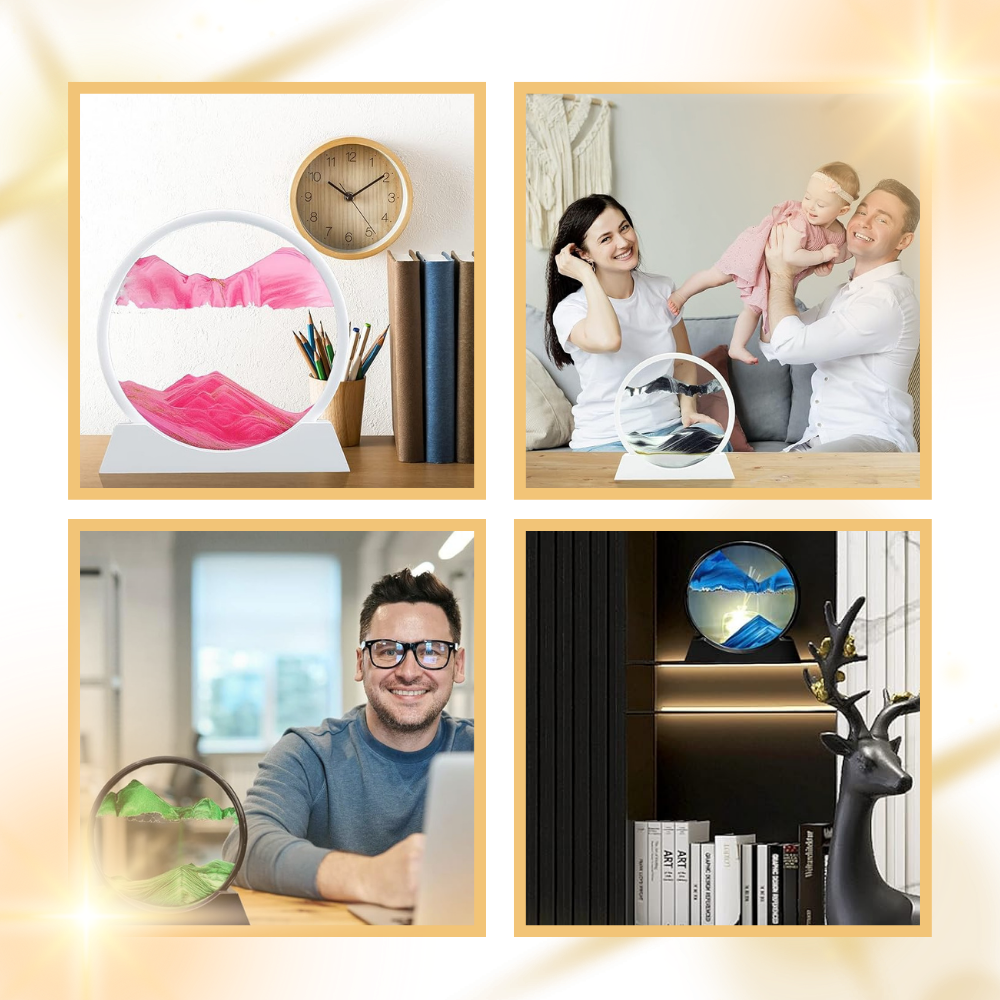 Il Quadro Ipnotico di Sabbia in Movimento incanta con il suo fluire armonioso, catturando l'attenzione a ogni rotazione. Il movimento delicato e continuo della sabbia crea un ritmo rilassante e meditativo, invitando a lasciarsi trasportare e a liberarsi dalle tensioni quotidiane. Questa caratteristica ipnotica lo rende uno strumento perfetto per favorire il rilassamento e la consapevolezza, offrendo un modo semplice ma efficace per ritagliarsi un momento di pace in una giornata frenetica. Il flusso lento della sabbia non solo è visivamente affascinante, ma richiama anche alla mente l'importanza di rallentare e godere della bellezza del presente. Questo effetto calmante è particolarmente utile in ambienti di lavoro, dove una breve pausa immersi nel movimento tranquillo della sabbia può aiutare a ritrovare concentrazione e freschezza mentale.