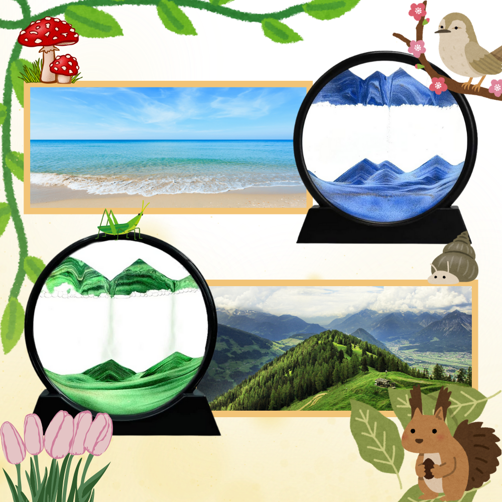 La bellezza fluida e imprevedibile della natura ha un fascino irresistibile, e il Quadro Ipnotico di Sabbia in Movimento riesce a catturare questa essenza con eleganza. Ogni rotazione di questo pezzo decorativo svela un nuovo paesaggio mozzafiato, che ricorda i panorami mutevoli di deserti, oceani e montagne. Ogni scena è unica, mantenendo l'osservatore affascinato e curioso, poiché nessuna formazione si ripete. La sabbia brillante aggiunge profondità e mistero, conferendo a questa opera d'arte un dinamismo continuo che non smette mai di incantare. Guardare questi paesaggi che si trasformano sotto i vostri occhi infonde un senso di stupore e tranquillità, rendendo questo quadro l'aggiunta perfetta per qualsiasi ambiente che desidera un tocco di magia naturale e serenità.